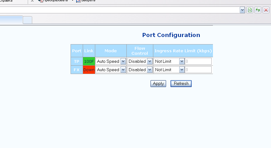 На странице конфигурирования порта: параметры и функции по настройке пропускной способности порта, вкл./выкл. функции управления потока передачи данных - "flow control", а также ограничение скорости передачи данных.